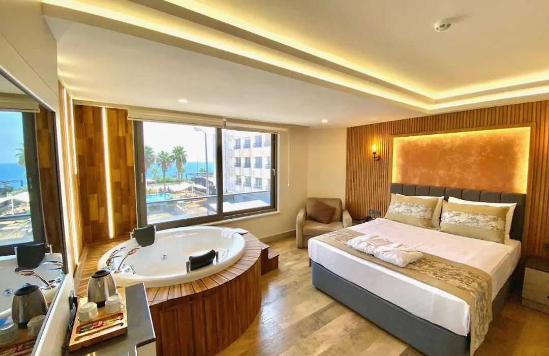 In ogni camera vengono offerti finestre panoramiche, possibilità di preparare tè/caffè e una cassetta di sicurezza, come anche una microonde, utensili da cucina e una lavastoviglie. Durante il vostro soggiorno in Green Beyza Suites potete godere di una vista sul mare. Una vasca da bagno, vestaglie e un lavandino sono disponibili nei bagni.